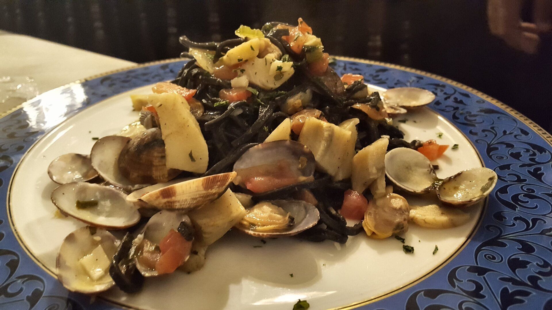 Le sapienti mani degli chef danzano tra farine setose, plasmando la pasta fresca come i tagliolini al nero di seppia, famoso piatto veneziano,