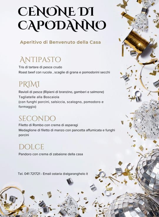 CAPODANNO 2025 / Menù pesce 85€ Menù carne 75€